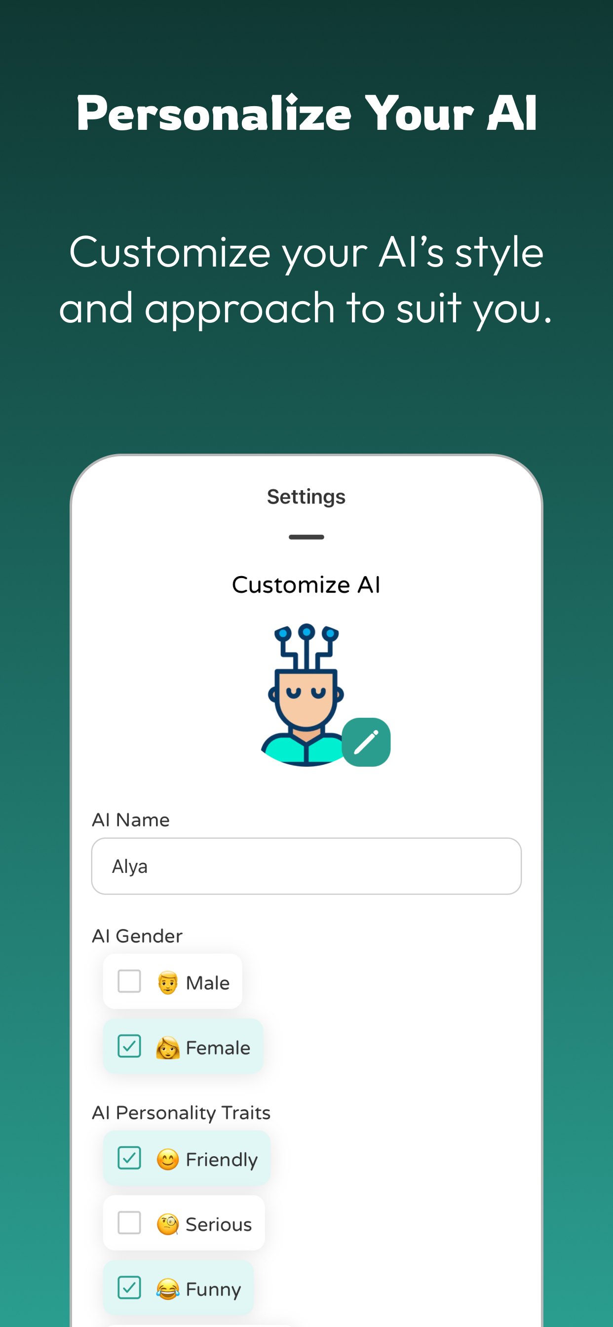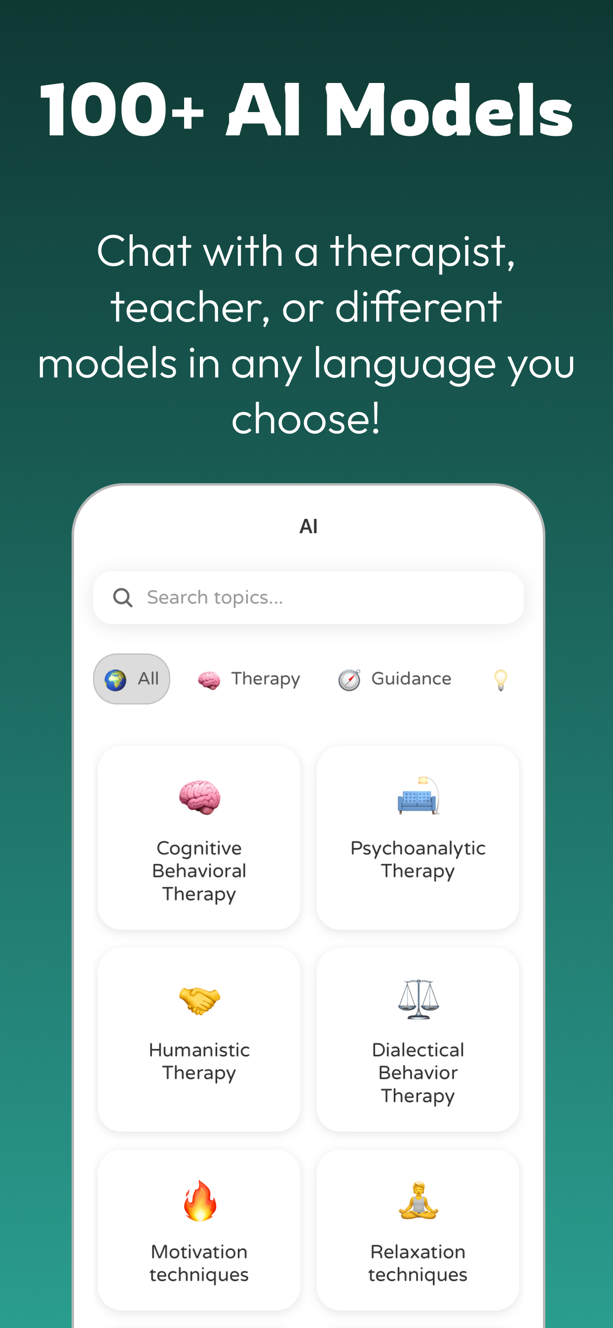 Connect with Alya, an AI-powered therapy chat app designed to support your mental health and personal growth. Choose from over 100 AI models in 22 languages to receive personalized support anytime, anywhere.
